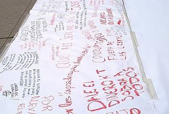 Un mural recoge las protestas.Imágenes de Patricia Pintado.El número de ciudades a las que se ha extendido el movimiento del 15M ya es practicamente incontable. A cada noticia que sale, decenas más, ya sobre todo en el extranjero, se suman a las protestas.