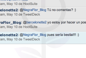 Me gustó tanto su post que, nada más leerlo, decidí compartirlo en Twitter. Y éste es el pantallazo de la conversación que tuvimos Xènia y yo: