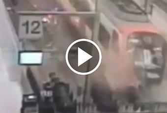 Cámara capta el momento en que el convoy chocó contra el tope del final de la vía.