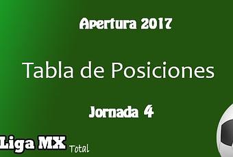 Al termino de la cuarta jornada de la Liga MX, donde algunos equipos ya comienzan a despuntar en la tabla general y otros se empiezan a rezagar. Como Rayados de Monterrey que goleó en casa a Chivas y se coloca líder absoluto del Apertura 2017.