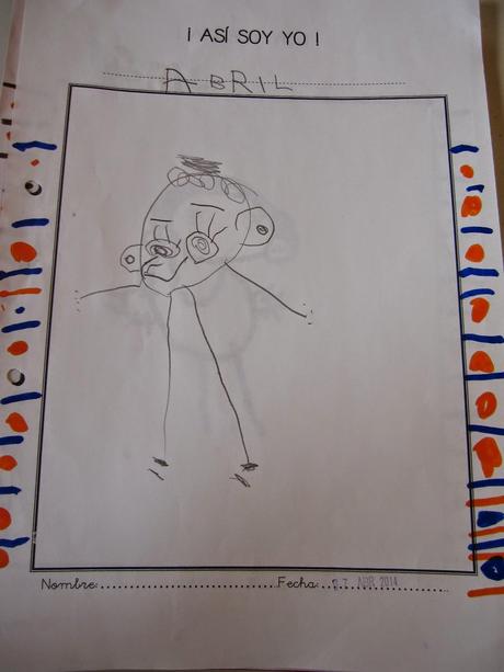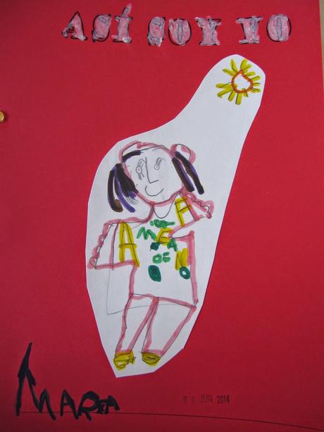 Ya estamos terminando el curso y os voy a enseñar el que es para mí uno de los trabajos más bonitos que han hecho los niños de mi clase de 3 años. Seguro que muchos ya lo hacéis por lo que no es ninguna novedad. Para los que no lo hayáis hecho o no de forma tan sistemática, os recomiendo que cojáis la idea para próximos cursos, sobre todo con alumnos de 3 y 4 años.Cada mes, desde octubre hasta junio, en una hoja siempre con el mismo formato, los alumnos han ido dibujando su cuerpo y escribiendo su nombre. En ese momento los exponíamos en nuestro panel "Mis amigos y yo" y cuando ya teníamos los del siguiente mes se guardaban los anteriores. Al finalizar el curso han realizado la portada, con un formato similar a las hojas mensuales y se lo encuaderné. Quedó un librito precioso de la evolución del dibujo de cada niño. A mi me parece una maravilla. Me emociona ver cómo mejoran así, sin querer, por su propia maduración, cómo se van dando cuenta de lo que tienen, dónde está y son capaces de plasmarlo en papel. Y es maravillosos ver cómo de pronto no sólo saben que su camiseta tiene letras o rayas sino que son capaces de dibujarlas. Y para los padres me parece un regalo precioso, una huella más del proceso de maduración de sus hijos.