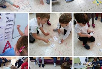 La seño, además, nos ha preparado en clase un espacio para que juguemos libremente con los nombres.