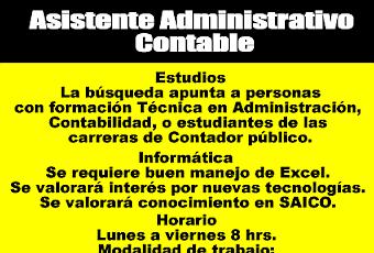 Estudios La búsqueda apunta a personas con formación Técnica en Administración, Contabilidad, o estudiantes de las carreras de Contador público.