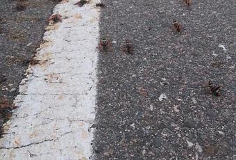 Algo pasó. Abejas muertas, esta semana, sobre la ruta que une Villa Dolores con La Paz, al sur del Valle de Traslasierra. (gentileza gabriel Escobar)Enorme pérdida