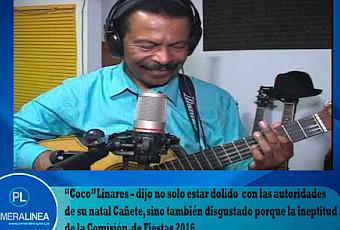 “Yo creo que lo primero es cumplir con los compromisos y deudas pendientes. Aquí se ha maltratado mi trabajo, mi trayectoria al igual que la de otras personas”, continuó diciendo.El popular “Coco” Linares – dijo no solo estar dolido con las autoridades de su natal Cañete, sino también disgustado porque la ineptitud de la Comisión de Fiestas 2016 – ha desprestigiado a la Cuna y Capital del Arte Negro con maltrato a figuras como Cecilia Barraza, la primera agrupación peruana ´ Mammaye", Jose de la Cruz ´Guajaja ¨ y Zoila Monteodoro, además de la agrupación Punto Pe y Milena Salamanca, artistas Argentinos que promueven la música afroperuana en su país.“Creo que el alcalde Alex Bazán debió asumir esa responsabilidad desde el año pasado, porque él sabía que habían problemas en la Comisión, pero no hizo absolutamente nada”, añadió.NOTA DE REDACCIÓN: Marcelino Santiago Linares Zegarra, nació en San Luis de Cañete en el año 1955. Es egresado del Conservatorio Nacional de Música en la especialidad de Guitarra Clásica y considerado como uno de los más destacados guitarristas, compositores, arreglistas y directores musicales del Perú. Ha sido merecedor de diversas distinciones como la recibida en el año 1978 como Mejor Arreglista Joven. El Ministerio de Cultura reconoce como Personalidad Meritoria de la Cultura a don Marcelino Santiago Linares Zegarra por su destacado aporte a la cultura musical peruana.