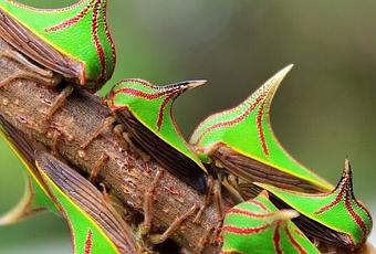 Es un insecto que tiene apariencia de espinas, se encuentran en Sudamérica, es de color amarillo, testáceo o verde pálido pero sin duda tiene una forma alienigena que da un poco de curiosidad,¿ que opinas?.