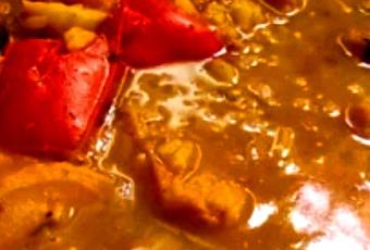 Preparación del asopao de mariscos con coco: sofrito y finalización.