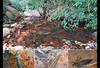 25/08/2021. Náyades (larvas de libélula) en el fondo de la poza de un arroyo en la Sierra de Espadán. Tremendos depredadores, las más grandes están muy solas, sin nada que se les acerque. Las menores, más acompañadas y guardando distancias con la mayores.
