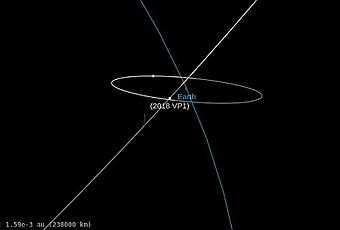 El asteroide, llamado 2018VP1, orbita el sistema solar y se acerca a la tierra con una probabilidad de impacto del 0.4% (1 entre 240). Fue descubierto en noviembre de 2018 cuando pasó cerca del planeta.