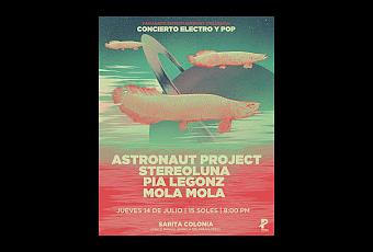 Llega un concierto en el que habrá una serie de propuestas musicales en una pequeña gran fiesta de pop e indie en Lima. Con sabor a un show electro pop, un show donde estarán Astronaut Project, Stereoluna, Mola Mola y Pia Legonz en un elegante escenario.