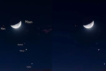 Mercurio, Júpiter, Venus, Urano y Marte estuvieron debajo de la Luna, y se dejaron ver al atardecer desde el 23 de marzo.