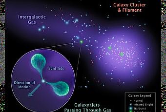 "Estos filamentos son parte integral de la evolución de los cúmulos galácticos -entre los objetos gravitatoriamente ligados más grandes del Universo- así como la creación de una nueva generación de estrellas", dijo Louise Edwards, estudiante de posdoctorado en el Instituto Tecnológico de California en Pasadena, y autora principal de un estudio que detalla sus hallazgos en la edición del 1 de diciembre de la revista Astrophysical Journal Letters. Sus colaboradores son Dario Fadda, también de Caltech, y Dave Frayer del Observatorio de Radio Astronomía de la Fundación Nacional de Ciencia en Charlottesville, Virginia.