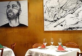 Asturianos mantiene la estética de antaño con una fachada que no invita a entrar de ninguna de las maneras, por lo que si traspasas su puerta, probablemente el boca a boca haya jugado un papel determinante. Una vez dentro, en una primera instancia encontramos una zona de barra y unas cuántas mesas para picar algo. En las paredes reposan pizarras dónde podemos observar su oferta gastronómica. Tras atravesar un estrecho pasillo llegamos a un salón rectangular de tamaño reducido. Una de las paredes presenta ladrillo visto y el resto se encuentran rematadas en madera. Servilletas y manteles de tela, no podía ser de otra manera. Varios cuadros con trazos en tinta negra rompen con el clasicismo que se percibe a lo largo de todo el local. Cabe decir que el cuidado en la decoración es inversamente proporcional a la calidad de la comida. Imagínense como nos pusimos.