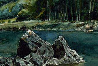 Hondarribia. Las rocas del puerto. Acuarela sobre papel 25x35 cms.