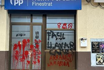La sede del PP en la localidad alicantina de Finestrat ha sufrido un ataque con pintura roja vertida sobre su fachada y pintadas registrado la pasada noche, según ha informado en un comunicado el Partido Popular de la Comunitat Valenciana (PPCV). En las pintadas, en negro y rojo, se puede leer en valenciano ‘Fàcil llavar cares Arran La Marina’.
