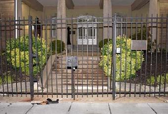 Específicamente, los técnicos de la escena del crimen observaron y fotografiaron múltiples defectos aparentes en el área del patio delantero / entrada, incluido el daño aparente a la cerca exterior, el asta de la bandera, la estatua y los pilares.