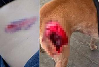 Según informes, la mujer sufrió lesiones menores en el vientre, mientras que su perro presenta una grave herida en una de las patas traseras.