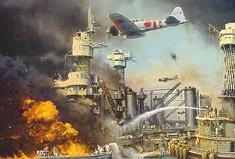 El ataque a Pearl Harbor fue una ofensiva militar sorpresa efectuada por la Armada Imperial Japonesa contra la base naval de los Estados Unidos en Pearl Harbor, Hawái, en la mañana del 7 de diciembre de 1941. El ataque pretendía ser una acción preventiva destinada a evitar la intervención de la Flota del Pacífico de los Estados Unidos en las acciones militares que el Imperio del Japón estaba planeando realizar en el Sudeste Asiático contra las posesiones ultramarinas del Reino Unido, los Países Bajos y los propios Estados Unidos. Los japoneses hicieron coincidir esta ofensiva con el ataque a las posesiones del Imperio Británico en Malasia, Singapur y Hong Kong, todas las cuales estaban ya en su poder a mediados de febrero de 1942.La base naval fue atacada por 353 aeronaves japonesas que incluían cazas de combate, bombarderos y torpederos que despegaron de seis portaaviones. Resultaron dañados los ocho acorazados estadounidenses estacionados en el puerto, y cuatro de ellos se hundieron. De estos ocho, dos fueron reflotados y cuatro reparados, por lo que seis pudieron volver a entrar en servicio más tarde, durante la guerra. El ataque japonés también hundió o dañó tres cruceros, tres destructores, un buque escuela y un minador. Los norteamericanos perdieron 188 aeronaves, murieron 2402 estadounidenses y 1282 quedaron heridos de diversa consideración. Sin embargo, los japoneses no atacaron la central eléctrica, el astillero, las instalaciones de mantenimiento, los depósitos de combustible y torpedos, los muelles de submarinos y el edificio del cuartel general y de la sección de inteligencia. Los japoneses perdieron 29 aeronaves y cinco minisubmarinos, además de sufrir 65 bajas militares entre muertos y heridos. Asimismo, un marino japonés fue capturado vivo.