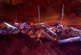 " Atardecer en el puerto ".Óleo espátula lienzo. Nov 2015.040 x 040 cm. Detalles.Carboneras Almeria España.