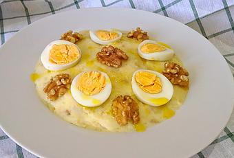 Decoramos con rodajas de huevo duro, las nueces y con un chorretón de AOVE.