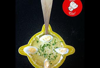Lo primero que hay que hacer para elaborar este plato tradicional, es desalar el bacalao, dejándolo en remojo desde un día antes y cambiando el agua al menos 3 veces. En esta ocasión, por urgencia, he utilizado bacalao congelado que no es lo mismo pero es igual. Pasamos a cocer en al mismo tiempo las patatas entrecortadas, es decir, cortando un lado y desgarrando el resto, y el bacalao. Una vez ya cocidas las patatas, las machacamos con un tenedor junto con un poco del caldo de la cocción. Se pueden hacer con minipimer, pero buscamos un puré irregular, que es lo tradicional. Por otro lado, vamos cociendo los huevos.Mientras se hacen las patatas y el bacalao, en un mortero se machacan los ajos. He utilizado un mortero grande para hacer todo el plato al estilo tradicional. A los ajos se le añade la yema de un huevo y se mezcla bien con una cuchara de madera. A esa mezcla poco a poco se le va añadiendo dos cucharadas de pan rallado y el puré de las patatas sin dejar de mover todo con la cuchara. Dejamos reposar esta mezcla unos minutos que aprovechamos para picar uno de los huevos y por otro lado desmigar el bacalao.Ya solamente queda añadir poco a poco, mientras seguimos dándole a la cuchara, el aceite, al gusto, el huevo picado y el bacalao desmigado. Removemos para homogeneizar la pasta, probamos y corregimos de sal si necesitara. Hay ocasiones que con la sal del bacalao desalado es suficiente. Para adornar el plato utilizaremos el perejil picado, el huevo duro y las nueces.