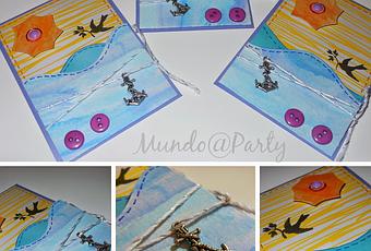 Hoy os traigo esta serie de atcs, de las últimas que hice. Inspirados en los colores del atardecer, anaranjados y morados. Además tienen algo particular y es que el mar es un deplegable que tiene olas y un mensaje "Hello Firend". Fue un desafio hacerlos. En principio no sabía muy bien como hacer el desplegable, es más, no tenía idea como hacía un desplegable en general, así que me puse a buscar inspiración en Pinterest.
