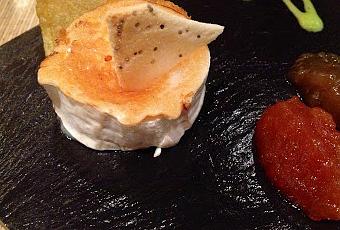 Cambiamos la ensalada por dos entrantes: queso de cabra gratinado, acompañado por una patata frita, que para mi gusto sobraba, y sin embargo, la compota de tomate me resultó escasa. El segundo entrante, una rebanadita de pan tostado con sardina ahumada y mantequilla de cebollino. Un pincho original, pero que tras mi visita a un restaurante asturiano en Madrid, no me supo a nada. (prometo post de ese restaurante esta semana).