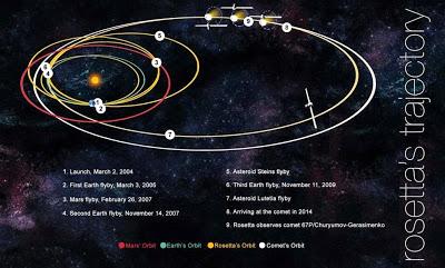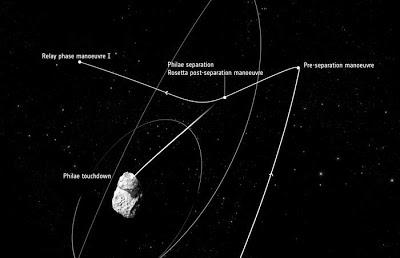 Por primera vez, una nave espacial va a aterrizar, aunque sería mejor decir "acometizar" en un cometa, más exactamente en el 67P/Churyumov–Gerasimenko, que se encuentra entre la órbita de Júpiter y la de Marte.