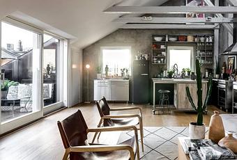Este ático de 106 m2 os fascinará. Su decoración industrial y el interior casi abierto por completo os transportará a los modernos lofts neoyorquinos de los 80.