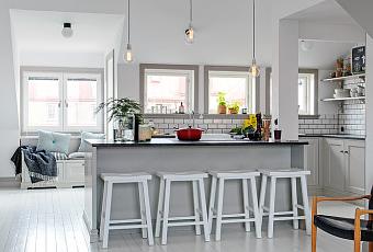 En las fotos siguientes tenéis un buen ejemplo, es un dúplex con ventanas por todos los lados, distribución diáfana y decoración en grises y blancos, lo que todavía proyecta más la luz. Hay muchos detalles estupendos de almacenaje en la cocina, el estudio en el piso superior con techos abuhardillados… ah! y contaros que ha sido una reforma total hecha el año pasado, ya que el ático pertenece a un edificio construido a principios del siglo pasado en Gotemburgo. Espero que os guste ¡feliz lunes!