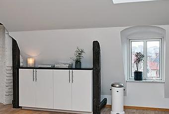 Las guresas vigas y columnas quedan a la vista, aun en un tono bien oscuro combinan perfectamente con los interiores blancos actuales.