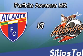 La transmisión por TV en México del partido entre Atlante vs Alebrijes de Oaxaca en el Ascenso MX se podrá ver en vivo en el horario antes mencionado por Univisión TDN (UTDN) que es quién tiene los derechos oficiales de transmisión de este partido y que se puede ver por tv de paga en los siguientes canales Cablevisión Monterrey canal 502, Izzi canal 502, Star Network canal 507, Sky canal 554, Cable Plus canal 64, Megacable canal 311, Gigacable canal 311, Totalplay canal 530, Cablecom canal 214, Telecable canal 32 y Cablemás canal 502.