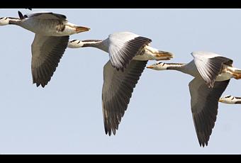 Los alpinistas que se esfuerzan por subir los últimos metros de la cumbre del monte Makalu, en el Himalaya, se asombran a menudo al ver a los ánsares indios volando sobre ellos hacia la India, donde pasan el invierno. Atraviesan el cielo a una altura de 8300 metros, casi tan alto como los aviones comerciales.