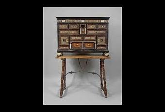 Bargueño:- Arcacon cajoncitos. Mueble de madera con muchos cajones pequeños y gavetas, adornado con labores de talla o de taracea, en parte dorados y en parte de colores vivos.
