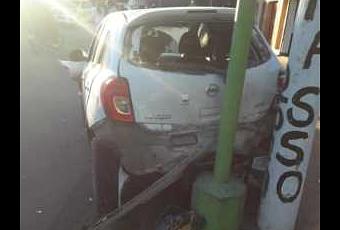 Un hombre protagonizó hoy dos accidentes consecutivos y terminó impactando de lleno contra un poste de luz en la esquina de calle San Martín y Necochea.