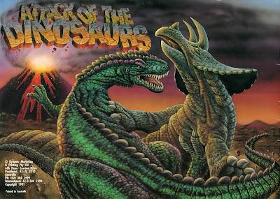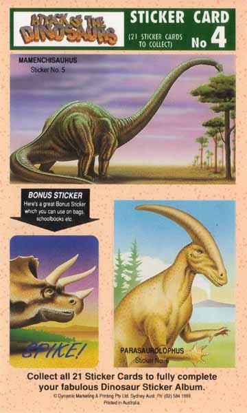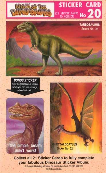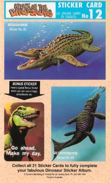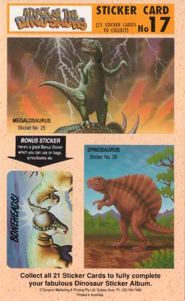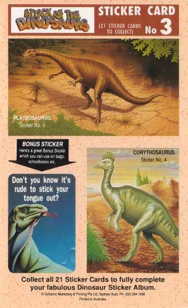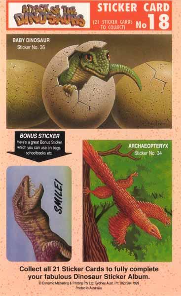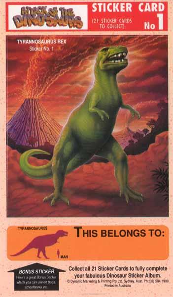 News Limited quiso rebajar el título a un prudente "Age of the Dinosaurs", pero John defendió con uñas y dientes el explosivo "Attack of the Dinosaurs". El álbum de cromos estaba disponible en todos los quioscos por tan solo 3.95$ (un precio ridículo teniendo en cuenta que solían costar unos 10$). Para conseguir los cromos, los jóvenes (más bien sus padres) debían adquirir diariamente el periódico Daily, recortar una ficha y llevarla a su quiosco junto con sesenta centavos para canjearlas por uno de los 36 cromos.