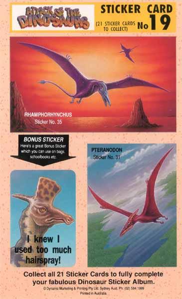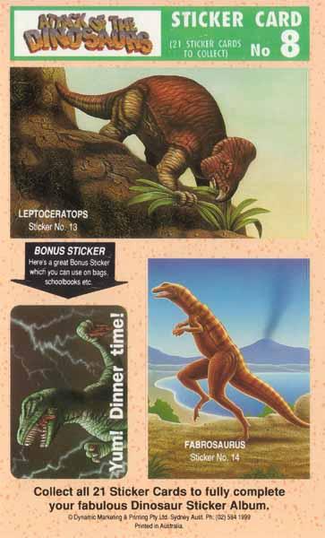 Además, en esa época, los dinosaurios formaban parte del currículo escolar, por lo que organizó una exitosa campaña para influir en el profesorado y animar a sus alumnos a coleccionar el álbum y los cromos. Se llegaron a vender más de 120.000 álbumes y 2.4 millones de cromos, convirtiéndolo en el libro más vendido de Australia en 1991. Los dinos nunca fallan.