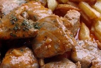 Ésta es un plato típico gaditano, pero hecho con brandy. Me equivoqué de botella y le eché vino oloroso. El resultado... riquísimo! Probarlo con cualquiera de los dos licores, pero os aseguro que con ese vino fue una delicia. Al lado del plato, tener un buen trozo de pan para mojar en tan rica salsa.