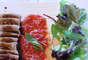 Se trata de atún con reducción de soja y acompañado de un poco de tomate rallado y ensalada.