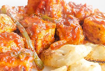 INGREDIENTES | 600 g de atún fresco, 1 pimiento verde, 1 cebolla, 400 g de tomate natural triturado, harina, Aceite de Oliva Virgen Extra, aceite para freír, pimienta, tomillo y sal.