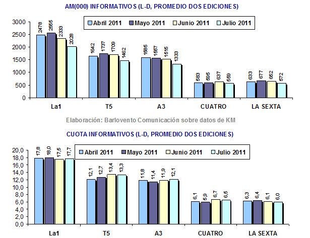 La 1 volvió a ser de nuevo la cadena con los informativos más vistos. Sumando este mes de julio, supone ya un total de 47 meses consecutivos sin perder el liderazgo en este marcador. Cabe destacar también que tanto la primera como la segunda edición se convierten en las más vista en sus franjas.
