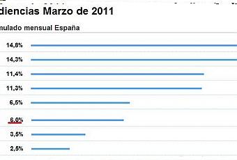 La Sexta obtiene un 6% de audiencia media en marzo de 2011, lo que supone una bajada de 3 décimas respecto al mes anterior. Sus espectadores siguen presentando un perfil masculino, joven-adulto y muy comercial.