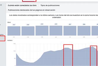 En este caso a las 15 y a las 21 horas. Bueno, ya tenemos una primera pista de a que horas es mejor publicar. También puede que tu página sea muy nueva y no tengas datos fiables todavía. Tendrás que hacer pruebas para ver cuales son las mejores horas al cabo de un tiempo. Un consejo: usa el sentido común y publica cuando creas que hay más gente viendo el Facebook.