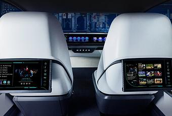 En respuesta a la prevalencia de grandes pantallas en los vehículos, AUO presenta una cabina fácil de usar aumentada por un avanzado AmLED curvo de 55 pulgadas de pilar a pilar. ® Pantalla que combina control táctil, cámaras y sensores integrados, así como un diseño liviano que ahorra energía y ayuda a reducir significativamente el consumo de energía. Esta pantalla puede albergar todos los elementos del sistema de conducción y de infoentretenimiento, conectando a conductores y pasajeros con información relevante y enlaces a la infraestructura. Está equipado con el sistema Driver Monitoring System (DMS) para analizar las condiciones de conducción y un modo de privacidad activa incorporado en la pantalla del pasajero que detecta automáticamente la línea de visión del conductor y ajusta y cambia la pantalla, contribuyendo a una experiencia de conducción más segura. La tecnología de detección de última generación conecta el "HUD panorámico inmersivo" en el parabrisas con el "Control táctil intuitivo del volante" , ofreciendo un ángulo de visión amplio y claro para mayor seguridad al volante.