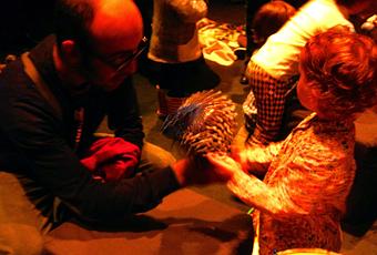 En la segunda parte de la exhibición, nos hicieron partícipes de él, repartiendo maracas hechas por ellos, de diferentes materiales, que producen diferentes sonidos y nos animaron a tocarlas y cantar.