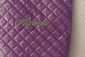 Para ella preparé un neceser con una bonita tela plastificada y acolchada en color morado.