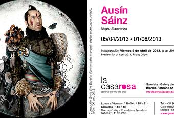 En la exposición Negro esperanza, La casarosa presenta de manera inédita en Málaga la serie Viva España, compuesta por cinco fotomontajes que recuerdan a los tradicionales retratos de corte barrocos. En ellos se plantean el tema de la pérdida de España tal como la conocíamos, la corrupción económica, los malos tratos, los problemas que puede acarrear la cirugía estética y la falta de ética en la Investigación. En todos ellos, Ausín Sáinz introduce referencias a las nuevas tecnologías como algo que nos encadena y que irremediablemente forma ya parte de nosotros. Además, presentamos su última pieza, una Dolorosa de influencias bizantinas que continúa la serie. A estos fotomontajes se les une la instalación Más mirar, más ver, massmedia, en la que el artista plantea una reflexión a partir de la manipulación de las portadas de los periódicos, la videocreación Conexión I, donde se muestra el proceso de creación de los fotomontajes, una pintura en tela estampada industrial de gran formato y las piezas creadas para Negro esperanza, una serie de obras que presentan las mismas temáticas desde lo pictórico y una colección de dibujos intervenidos que recuerdan a las estampas medievales y al célebre El sueño de la razón produce monstruos (1797-1799) de Goya.