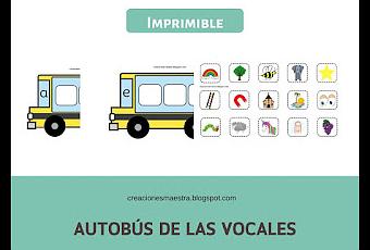 Les comparto un material para imprimir básico y fácil de trabajar con los pequeños. Pueden crear un mini libro, recortando los autobuses, haciendo un agujero y colocando una argolla. Cada vocal cuenta con tres imágenes, las cuales deben ser juntadas y pegadas en las ventanas de los autobuses. Ideal para trabajar en casa o en el salón de clases. Espero les sirva. Si les gusta el material no olvides unirte al blog y comentar esta publicación.