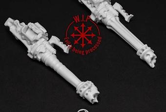 Para terminar,mientras dejo algunas cosas listas,una imagen previa de algo en lo que esta trabajando la gente de la marca polaca de piezas y miniaturas alternativas Evil Craft.Evil Craft es una marca que se ha hecho bastante conocida entre los aficionados por hacer piezas alternativas especificas para los MEC,tanto piezas como miniaturas enteras y esta vez nos sorprende con estas armas que aun están en WiP pero que muy pronto van a ver la luz.Ellos los han llamado "Automayhem",pero creo que no hay que explicar mucho que son realmente:Cañones automáticos alternativos.Faltan detalles,como por ejemplo,las cintas de munición que la gente de la marca ha prometido en su pagina de FB que tendrán.Y la verdad es que por las formas,se dan un aire a las armas pesadas que ha sacado FW para los marines de la Herejía de Horus,por lo que supongo que los sistemas de alimentación de la munición iran por esos derroteros.