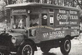 Los camiones en los primeros años del siglo XX solo usaban ruedas de gomas macizas lo que les impedía realizar grandes viajes por rutas. Así nace el Expreso del Pie Alado de Goodyear el primer transporte de larga distancia de que se tiene noticias.